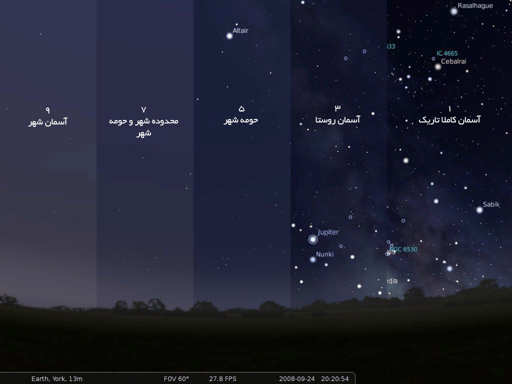مقیاس بورتل جهت نمایش مقدار آلودگی روشنایی آسمان