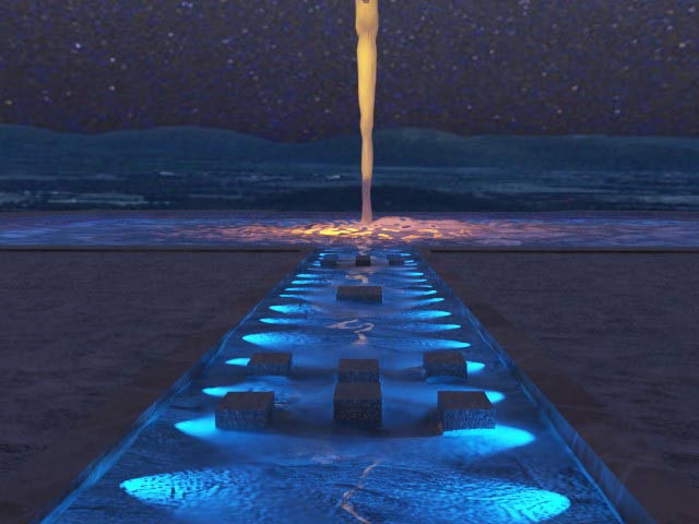 از نور آبی همچنین می توان در آب نما ها استفاده کرد.البته باز هم توصیه می شود کمتر از رنگ خالص آن استفاده کرد و بهتر است از ترکیب آن با کمی سبز یا سفید استفاده کرد.