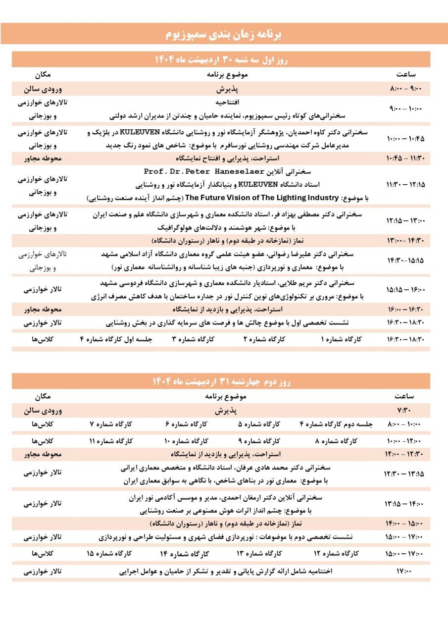 زمان بندی سمپوزیوم ملی نور و روشنایی ایران: