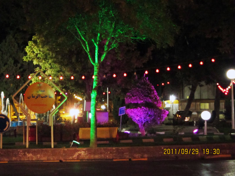 همین طور باید به ستون های نور اشاره کرد که در ذهن مخاطب یک خطای دید ناشی از پرسپکتیو را ایجاد می کنند و تفاوتی که در فواصل ستون ها وجود دارد خود جالب توجه است.این ستون های نورپردازی شده خود مثل درخت ها تکرار شونده و ممتد هستند.