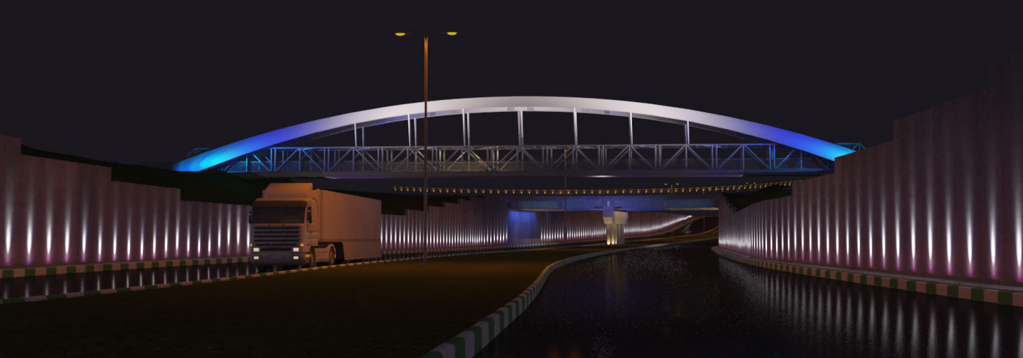 وجه مشخصه طراحی نورپردازی تقاطع غیر هم سطح نایبرگ Nyborg Bridge ایجاد یک محدوده امن و بارز از یک شاهراه ، و تامین یک نورپردازی زیبا و با ظرافت بو یک تجربه متفاوت برای راننده و آن هم بدون ایجاد مزاحمت بصری است.